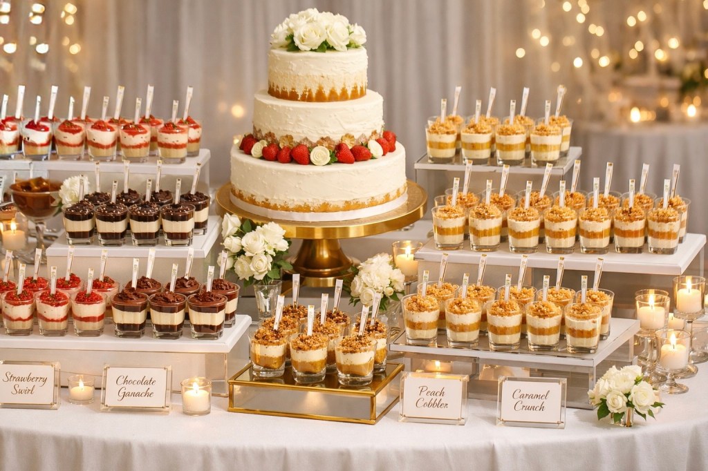 Individual desserts make it easier for guests to enjoy sweets while mingling and dancing.